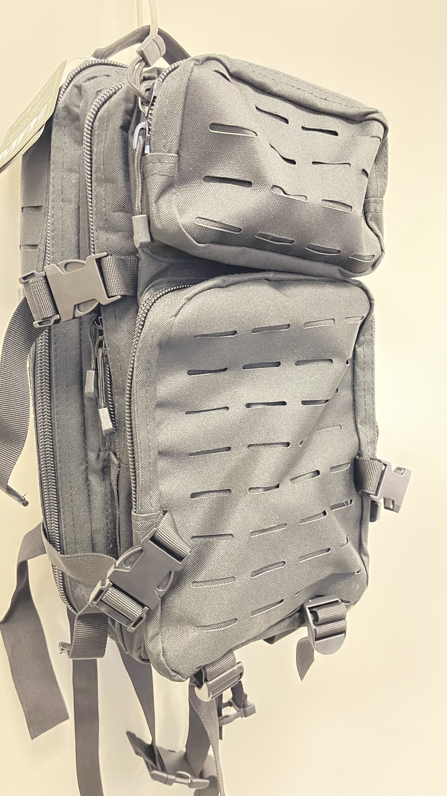 Laser Cut seljakott mis tähendab et ei ole enam tavalist mollet vaid saad varustuse kinnitada laserlõigatud paneeli külge.